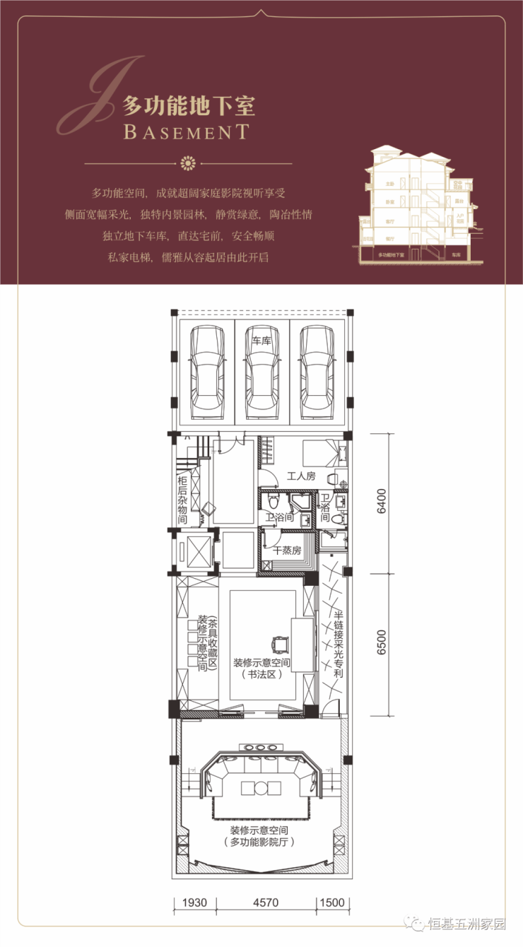 多功能厅+私家影院+地下独立车库+工人套房+前庭+后院+空中花园