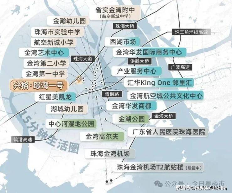 商业上,自带约7000㎡商业街区,规划引入超市、餐饮等便民业态;距今年底开业的金湾宝龙城Mall仅400米,2.5公里内还有华发商都,日常购物、休闲娱乐一站式满足。教育方面,600米可达公立九年一贯制的金湾二小,金湾一中与项目一路之隔,周边还有3所规划公办幼儿园,全龄教育资源步行可达。
