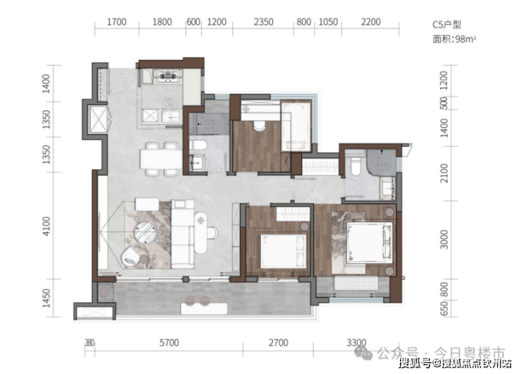 建面约98㎡三房两卫户型,拥有方正通透格局,配备约8米阔景大阳台,空间延展性十足。
