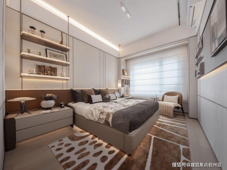 主卧是南向阳光VIP包厢,一整墙宽衣柜能塞下100件衣服,套间设计实现“主卧小家化”,关上门就是二人世界,悄悄话时刻。