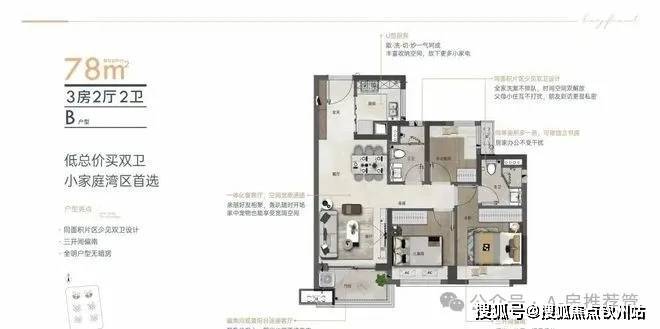 一线临海住宅,合理的空间利用保证更大利用率,同等面积多出市面上其他产品一个卫生间。从单身到三代同堂,每个家庭阶段都能有舒适的体验。