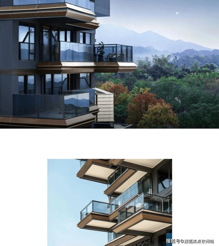 园林利用约 11 米高差,做成三层退台式立体景观+无边际泳池+空中茶室,更偏向“度假感”的社区体验;