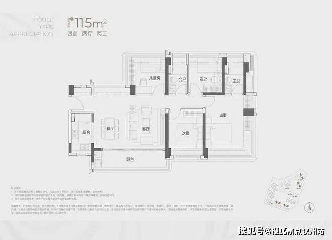 建面约115㎡4房2卫