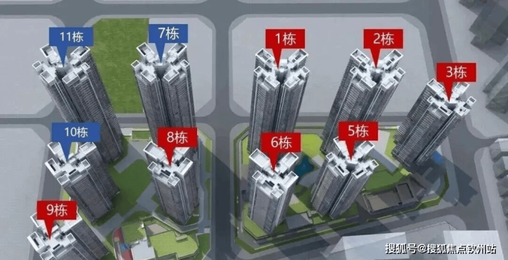 整个项目规划户数为1992户,其中东区1016套,西区976套,全部都是规划的商品房,涵盖了多种户型设计。其中,6栋、8栋、9栋和10栋的高层住宅采用2梯5户设计,3栋和5栋为2梯6户,而1栋、2栋、7栋和11栋的超高层住宅则采用3梯6户设计。