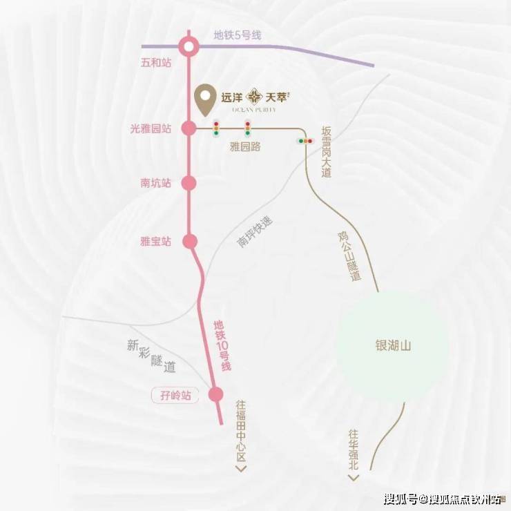 远洋天萃世纪位于光雅园TOD之上1平方公里醇熟漫步区,近可享坂田南的醇熟低密生活,步行即可抵达多年积淀的一平方公里商业配套(星河cocopark、坂田万科广场)及直线1.5公里开外约14平方公里面积的银湖山公园、南坑水库等生态配套;远可一线畅享市民中心、莲花山公园、深圳书城、深圳图书馆、深圳音乐厅等市级城市公建配套。