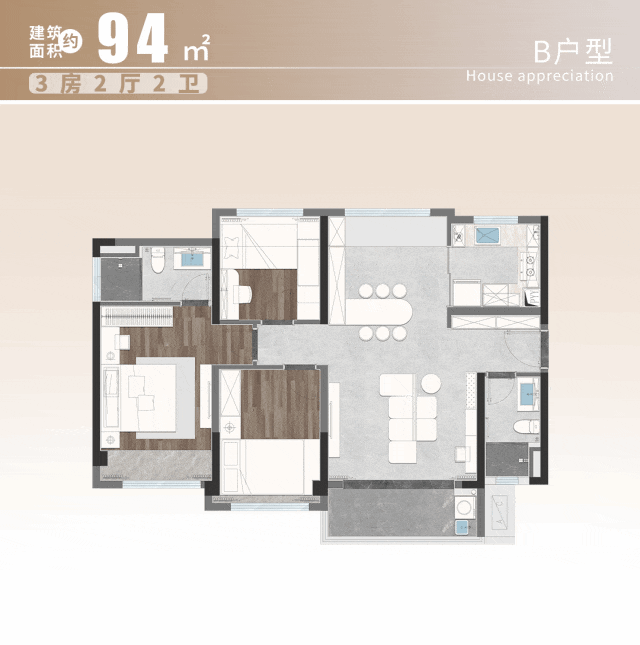 产品面积:84-110㎡3-4房