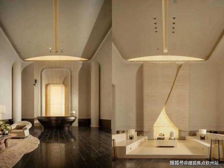 项目创新打造的约2500㎡立体下沉式会所已实景呈现,半开敞式空间将自然光引入私宴厅、健身房等功能空间,悬浮结构设计使其与周边景观浑然一体。