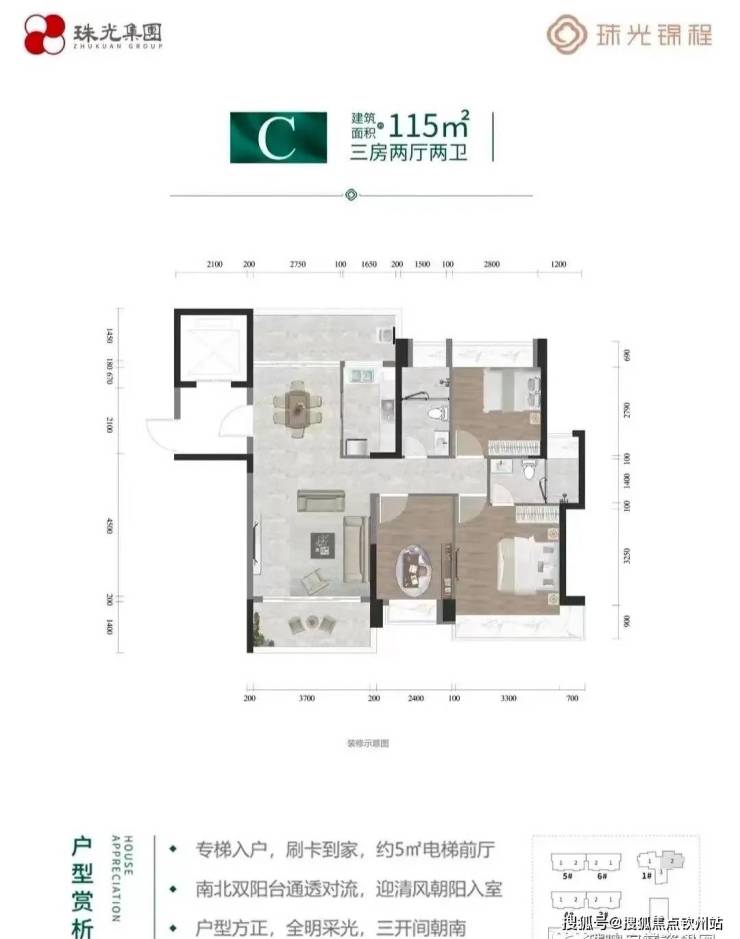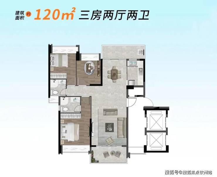 项目推出建面约85-120㎡精装二至三房,品质感拉满。