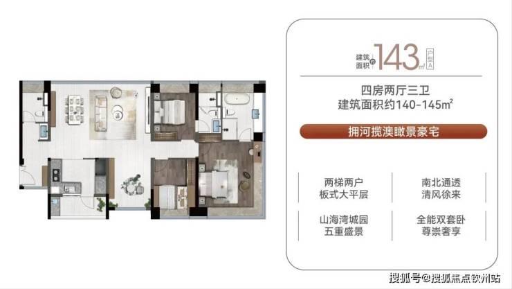 (2)143㎡四房:总价约715万元/套,单价约5.07万元/㎡;