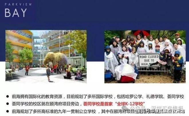 前海拥有国际化的教育资源,目前规划了多所国际学校,包括哈罗公学、礼德学院、荟同学校 。而荟同学校的校区,就在颐湾府项目旁边,荟同学校是首家“全球K-12学校。