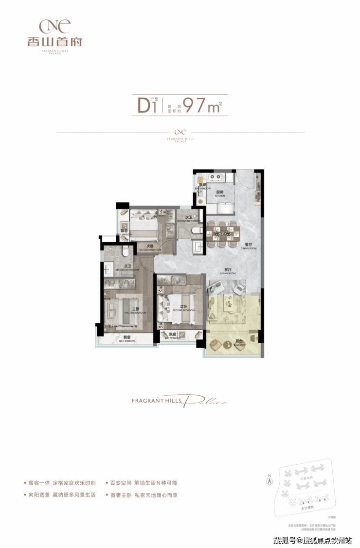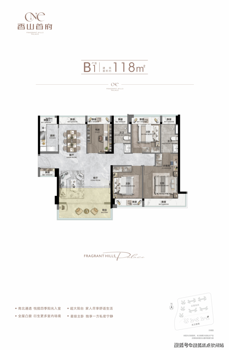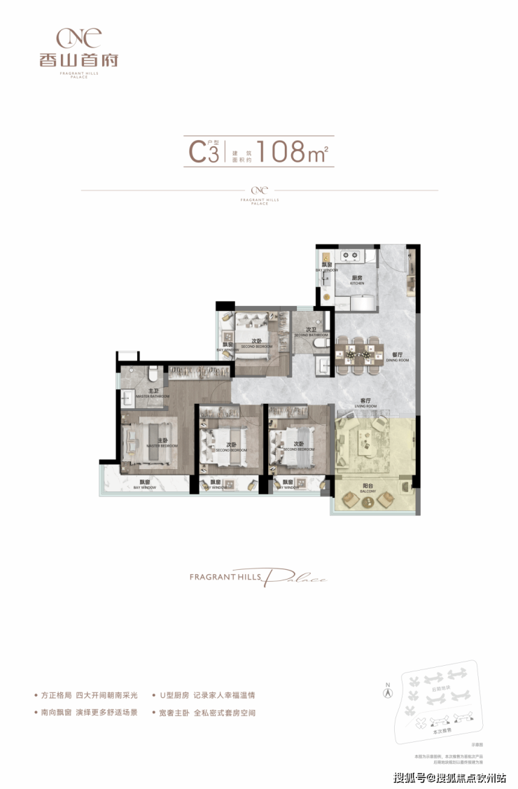 亮点:三开间朝南主卧,270°飘窗设计,最大化赠送