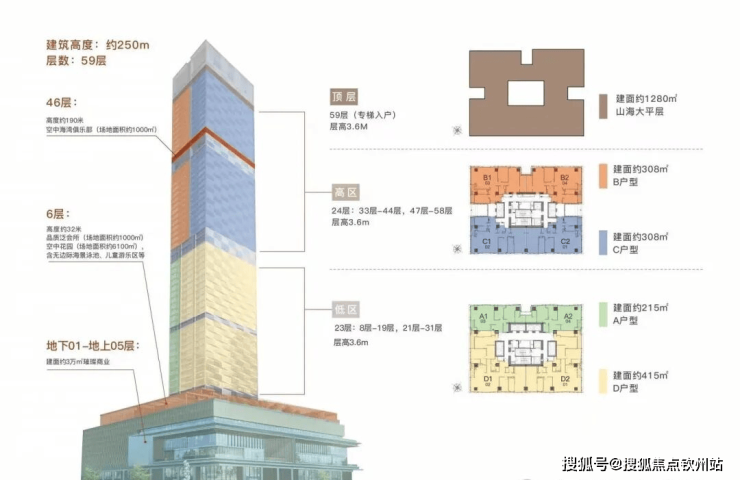 ◎建筑总层数:地下01-地上05层为商业、地上08-59层为品质公寓