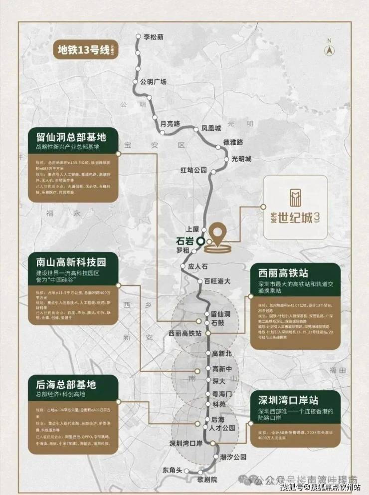 距13号线(在建中)石岩站约1公里,4站南山,7站科技园;