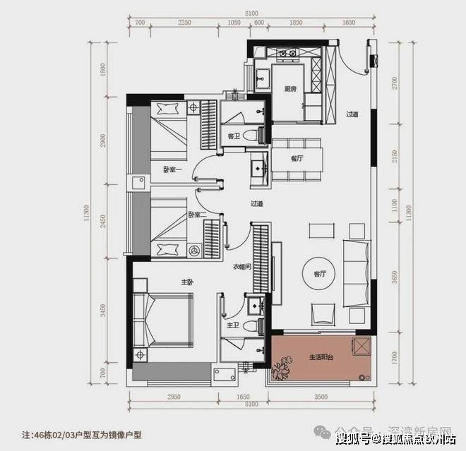 图二:81m² 两房两厅一卫