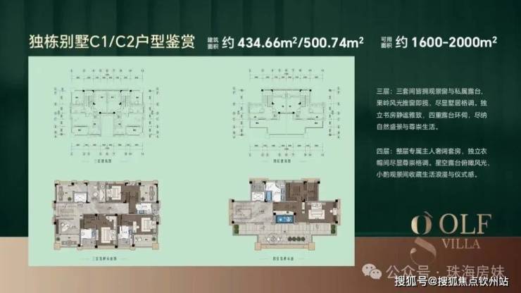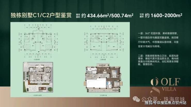 🔺独栋别墅C1/C2户型:建筑面积约434.66/493㎡,可用面积约1600-2000㎡