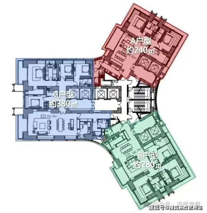 【规划套数】共1627套(一期1036套,二期591套) 【产品面积段】建筑面积约240-280-380㎡的3-5房