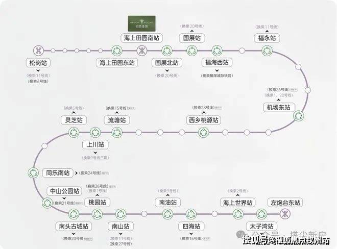 交通配套:项目出门就是12号地铁线“海上田园南站”,1站到国展北可换乘20号线,5站到福永可换乘11号地铁线,公路方面,距广深沿江高速入口仅500米,15分钟直达深圳湾;深中通道30分钟可至中山,1小时通达东莞滨海湾。此外,项目步行5分钟可达福永码头,乘船30分钟直达香港中环;距深圳宝安国际机场仅8公里,适合高频差旅人群。