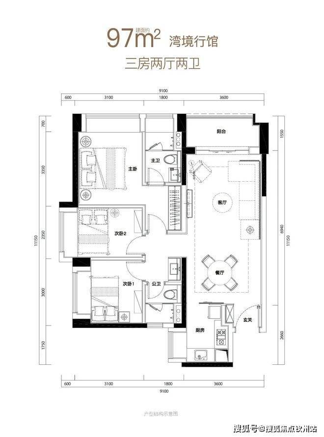 |建面约97㎡户型图