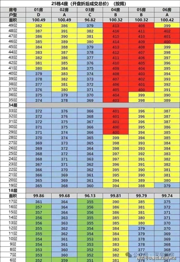 04户建面约100㎡,总价约:366-413万;