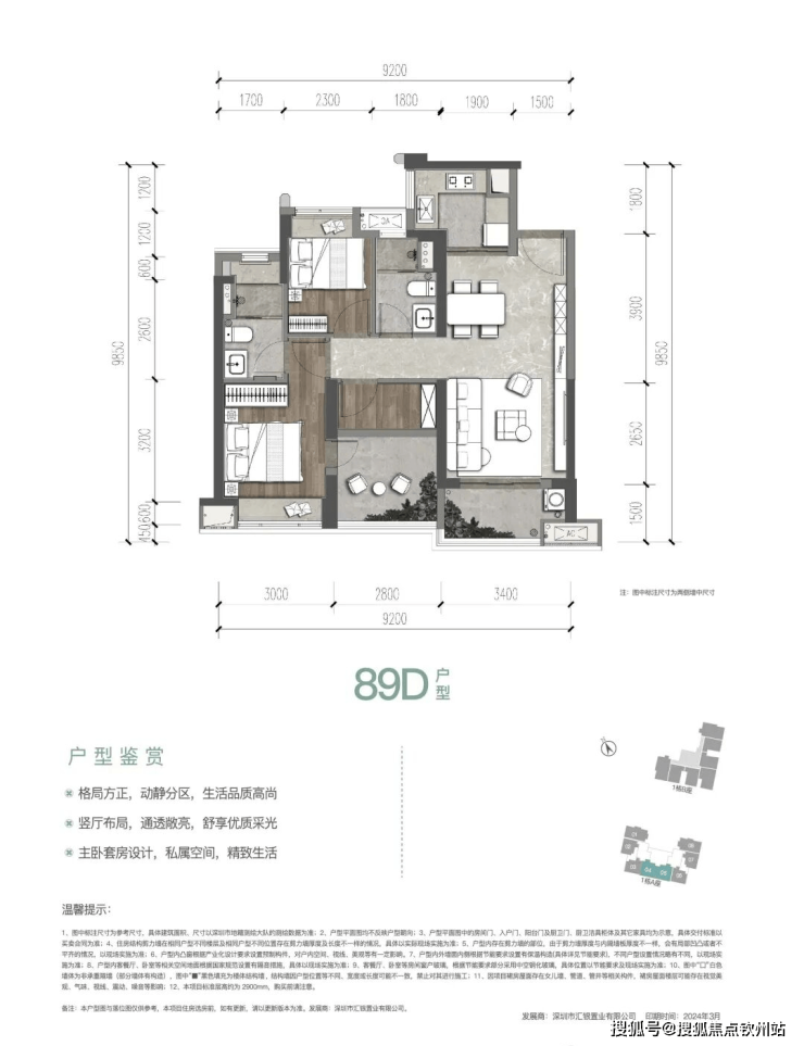 一期89㎡3房2卫,折后总价330-366万/套,单价3.7-4.11万/㎡。