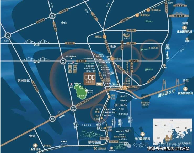 5分钟车程可到达广珠城轨珠海站,30-60分钟车程可到达香港、澳门、深圳、珠海4大国际机场