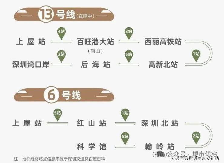 13号线据深圳交通局官网称将在2025年年底开通,该线路也是深圳3条快线之一,号称“深圳科技核心大动脉”,从南到北,串联深圳湾总部基地、后海中心、南山科技园、西丽高铁枢纽、留仙洞总部基地、白芒科研机构、宝安石岩科创城等多个重要片区。沿线华为、中国电子、腾讯、阿里等500强汇集,大批高新人才聚集,形成科创阵地,势必引领片区经济崛起。全程时速120公里,4站到南山百旺港大站,7站到南山西丽高铁站,8站到高新北。