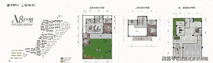 122-314㎡果岭高层百合苑;203-209㎡别苑洋房;667-803㎡法式独栋别墅海棠苑。