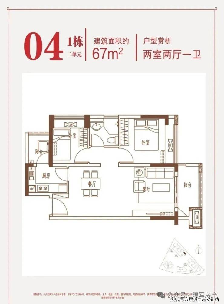 约67㎡两房:东南朝向,片区内唯一在售2房。