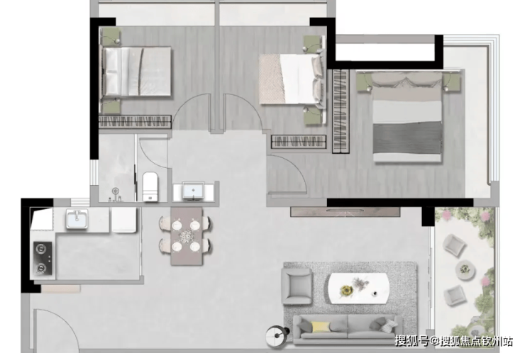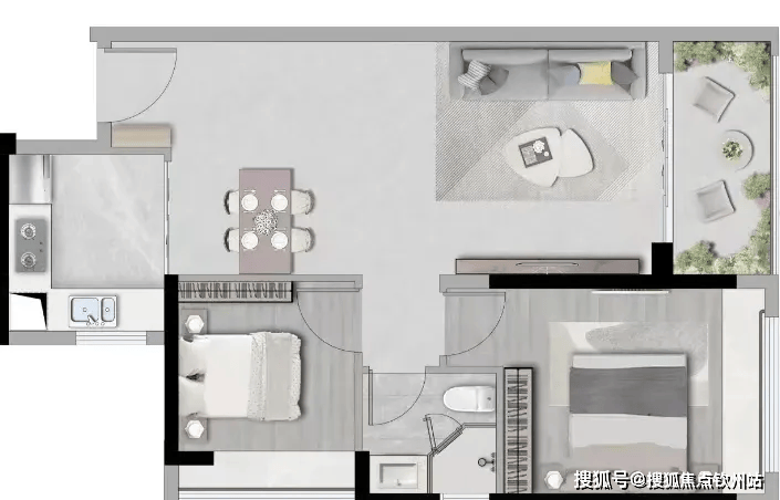 72㎡两房户型,高实用空间,动静分区科学布局;