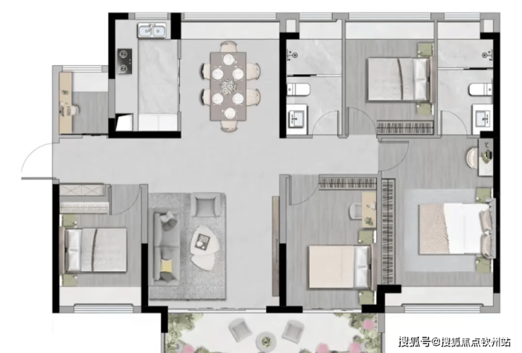 140㎡四+1房户型,央景C位,南北通透,全明空间。
