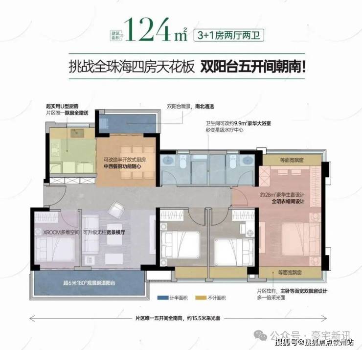 🩸【南北双阳台】约6.7米宽景阳台,约15.5米大面宽朝南,拥揽四季人生景致