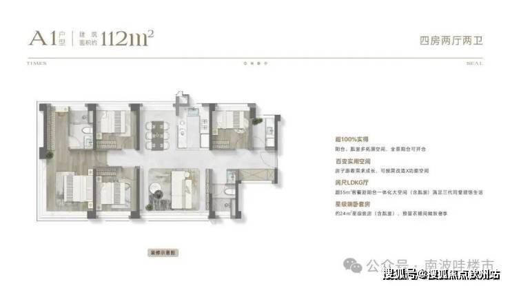 114㎡户型打造"四室朝南"格局,主卧配备3.6米全景飘窗