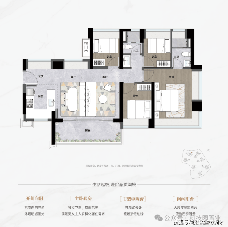 1、百变户型,空间折叠大师(可做两房豪宅级、三房改善级、四房刚需级)
