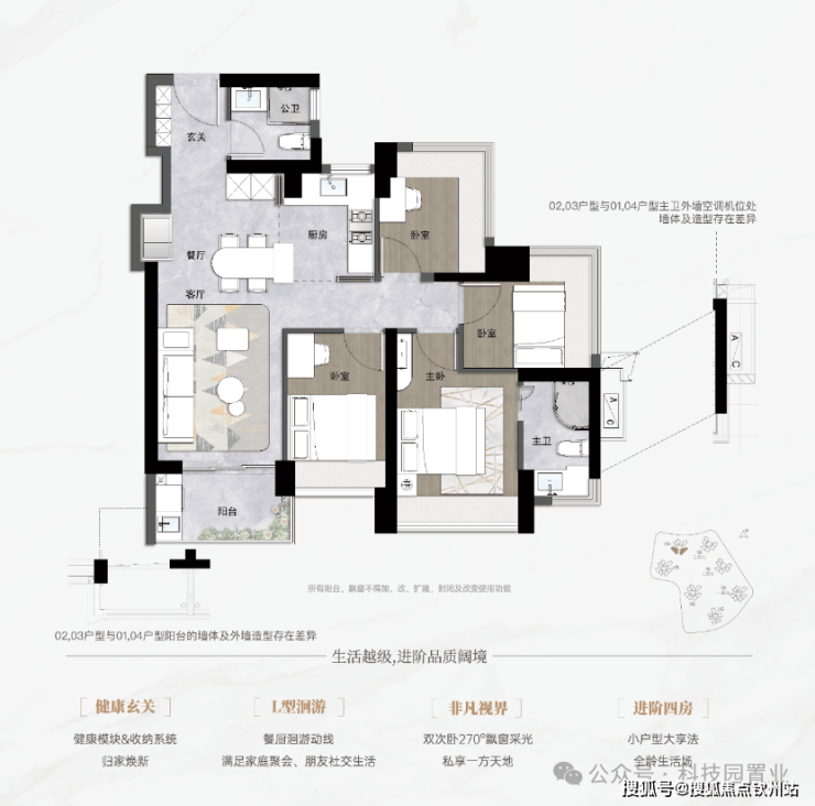 2、双卧室270°飘窗 健康玄关模块