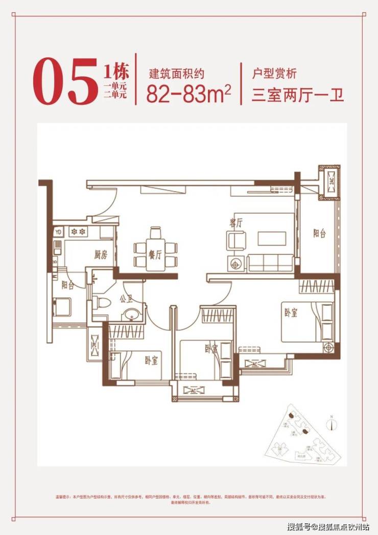 • 约81-83㎡三房两厅一卫;
