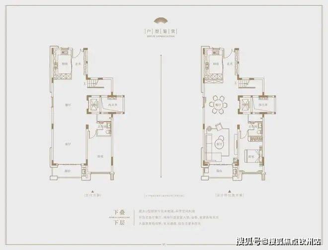 叠拼:206-243㎡,四房二厅三卫/四卫,精装
