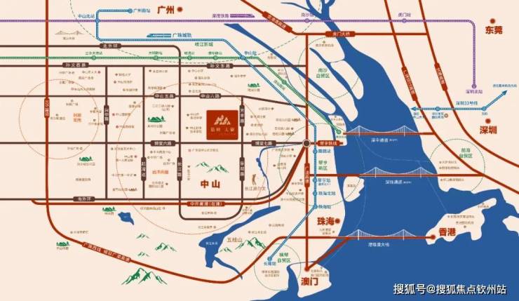 【湾区核芯】大湾区几何中心,深中桥头堡,国家开发区,以城市的核心地段为基,见证湾区疆域与雄心。中山位于粤港澳大湾区A字位,占据粤港澳大湾区核心节点位置,未来价值不可估量。