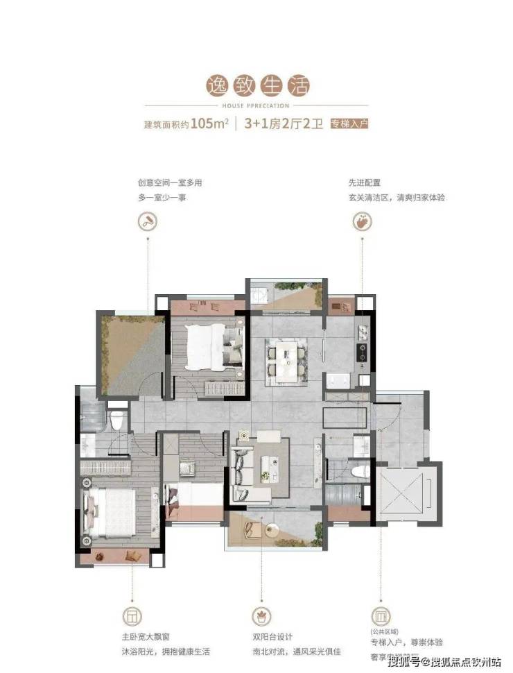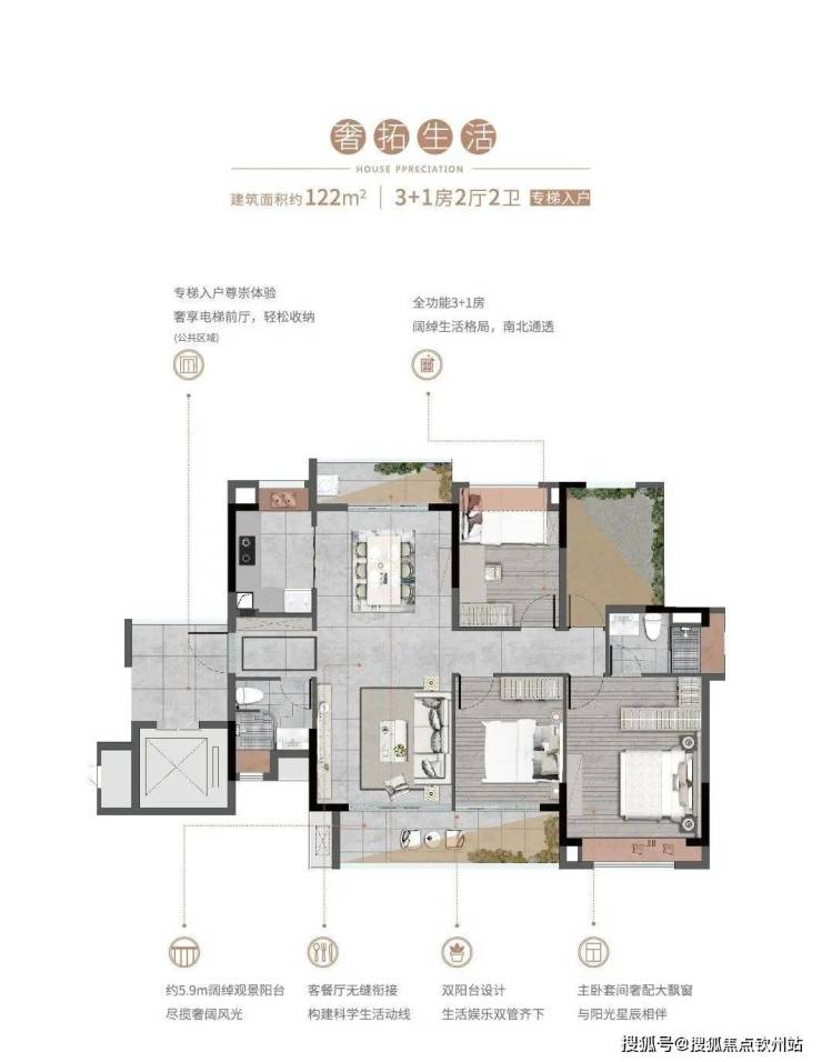 :户型设计贴合家庭成长需求,80㎡三房、122㎡四房等 N+1 户型,高赠送率提升空间利用率。
