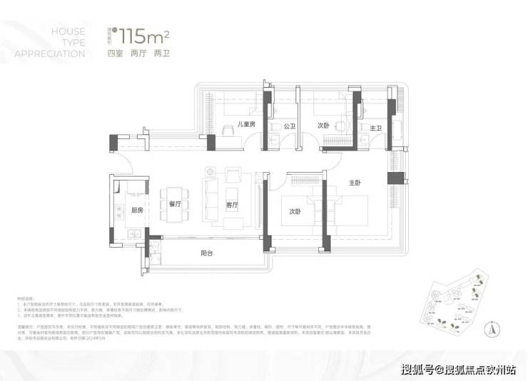 竖庭格局,西南向,基本居住功能与建面约108-110㎡4房2卫一致,但格局不一样,从目前公布的户型图上看,主要是主卧空间有了更大的提升,比如可以放更大一点的衣柜。但从位置上看,它所在的楼栋更靠近主干道,会有噪音影响。
