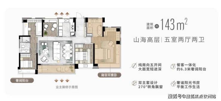 幸福生活除了户型朝向重要之外,还要考量整体的室内尺度。4#瞰景高性价比臻品约143㎡的五房户型,既实现空间功能尺度的突破,又兼容均衡与高效。