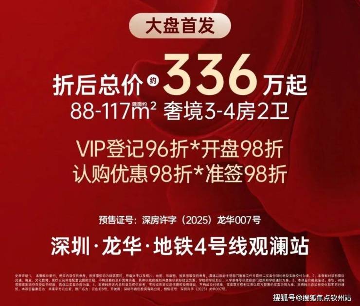 龙华观澜,鸿荣源观城(首推地块备案名:未来平方云山府)计划将在2025年5月份取证入市,本次将会首推1栋2单元,共312套房源,面积有88-98㎡的3房2卫,108-117㎡的4房2卫户型,周边有2024年9月入市的金光华溪山禾玺,备案均价4.43万/㎡以及2024年5月份入市的景勋天著,备案均价4.97万/㎡,实际折后销售均价4.2万/平,这次观城开盘均价大概率也是在这个幅度范围内,预计在2026年12月份带精装交付。