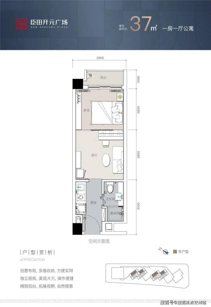 臣田开元广场【40年产权商务公寓】,户型和折后价格如下: