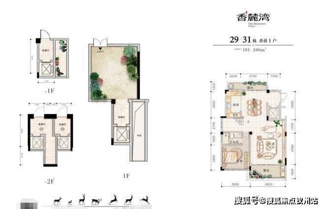 在售户型面积:叠拼182㎡ 3房2厅3卫,