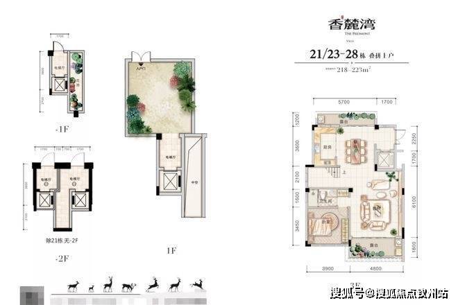 叠拼别墅是上下两户叠加在一起的一种新式别墅,其内部空间具有独栋别墅的一切元素。香麓湾叠拼别墅上户为-1、3、4、5楼,-1层为地下车库,可乘电梯直达3楼,1楼专享独立院落,又与下户出入互不干扰。各楼层空间布局合理,自然通透,多重生活场景,打造全龄人居空间。