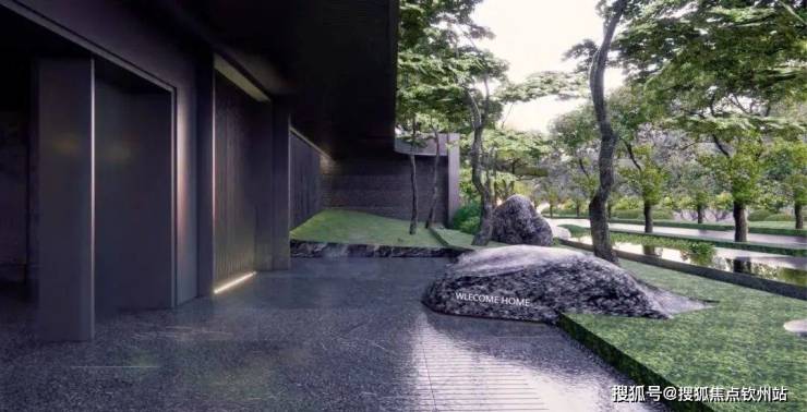 入口50米横向面宽,近6米的高跌水景墙与双层门楼让回家有了一份尊贵与隐奢;随着动线穿林,见山,伴水,来到模仿山石色调与铜色金属融合打造的酒店式大堂,一路草木清香、青石铺地、水系流动,自然的隐奢之美扑面而来。