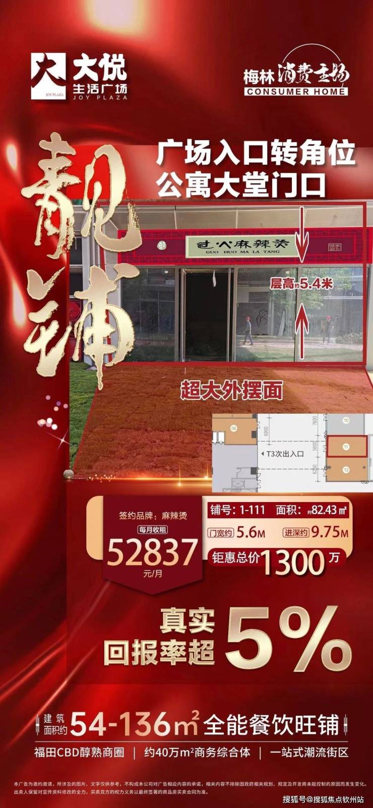 ✅119号铺|60 平,总价 619 万,沙县旗舰店,租约 408 元,回报率可达 4.8%;