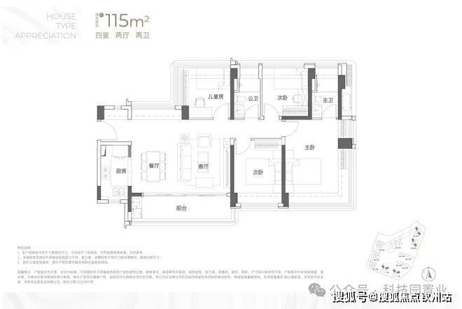 竖庭格局,西南向,基本居住功能与建面约108-110㎡4房2卫一致,但格局不一样,从目前公布的户型图上看,主要是主卧空间有了更大的提升,比如可以放更大一点的衣柜。但从位置上看,它所在的楼栋更靠近主干道,会有噪音影响。