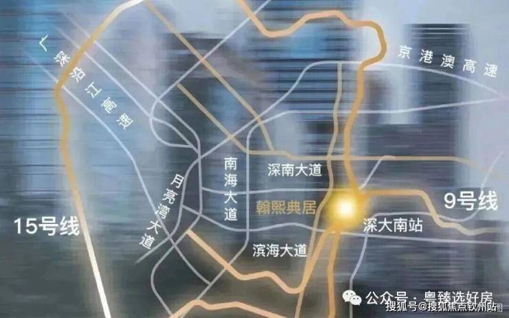 地铁9号线、15号线(在建中)交汇深大南站;9号线2站高新园、3站深超总、4站大前海区域;周边“四横三纵”主干道、双城际铁路及海空交通网络环绕,纵横驰骋,畅连全城。