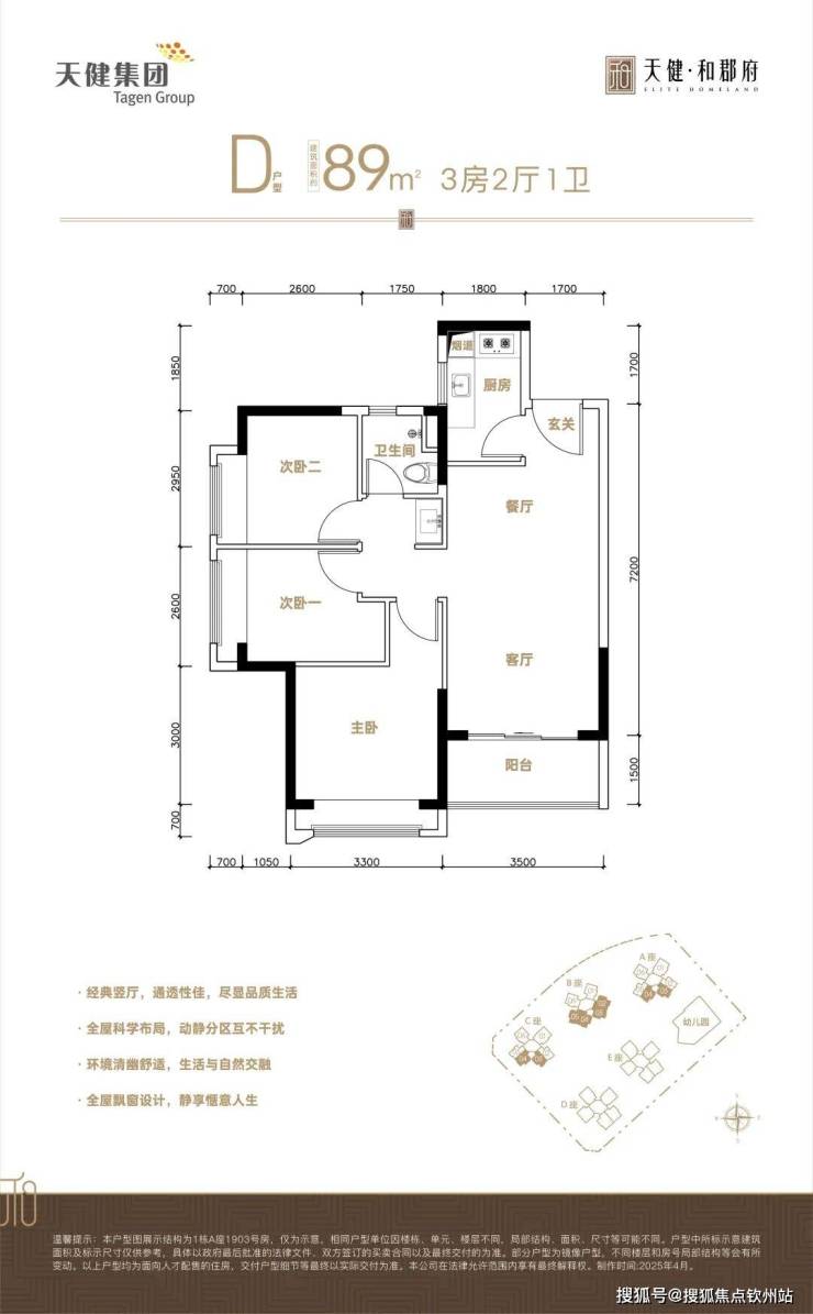 天健和郡府,匠心打造建面约89㎡全南向3房,为不同家庭需求生活量身定制,3梯6户,让出行更加便捷高效。单价约4.39万/㎡起,首付58万起,毛坯备案价带装修交付,以方正格局、实用玄关、宽境阳台等设计巧思,为每一个家庭构筑品质舒居生活。