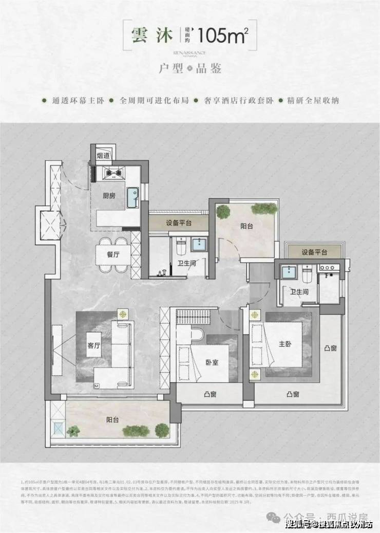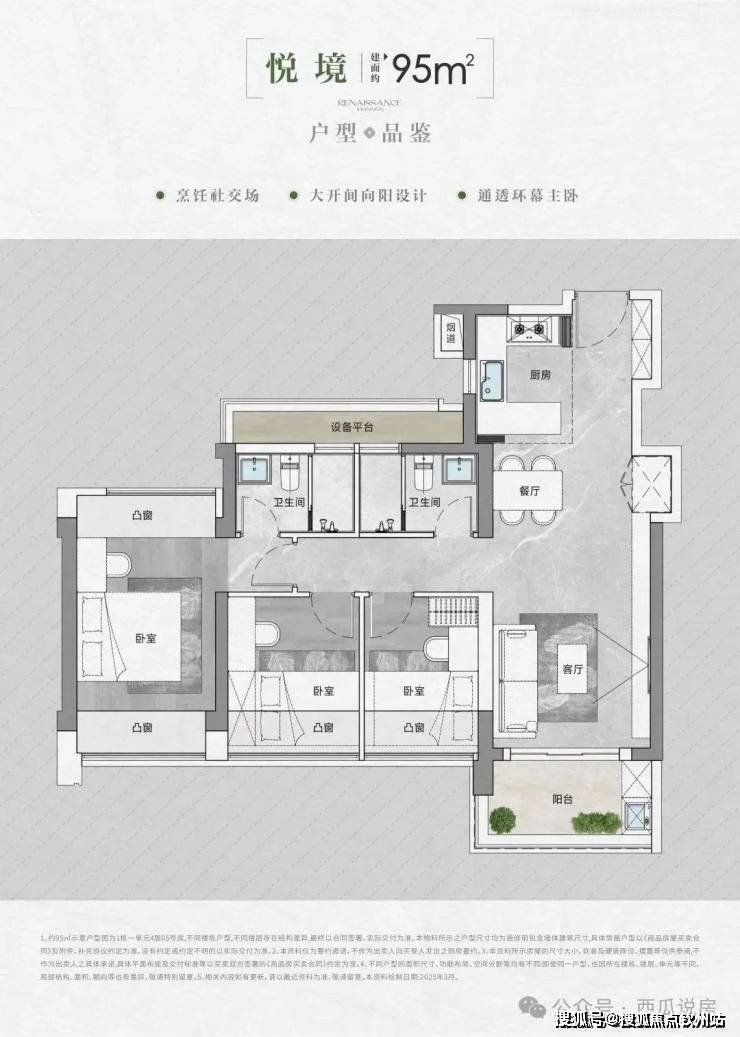 • 得房率:通过创新性的飘窗、双阳台改造、设备平台赠送等设计,实现平均94-96%的惊人得房率。